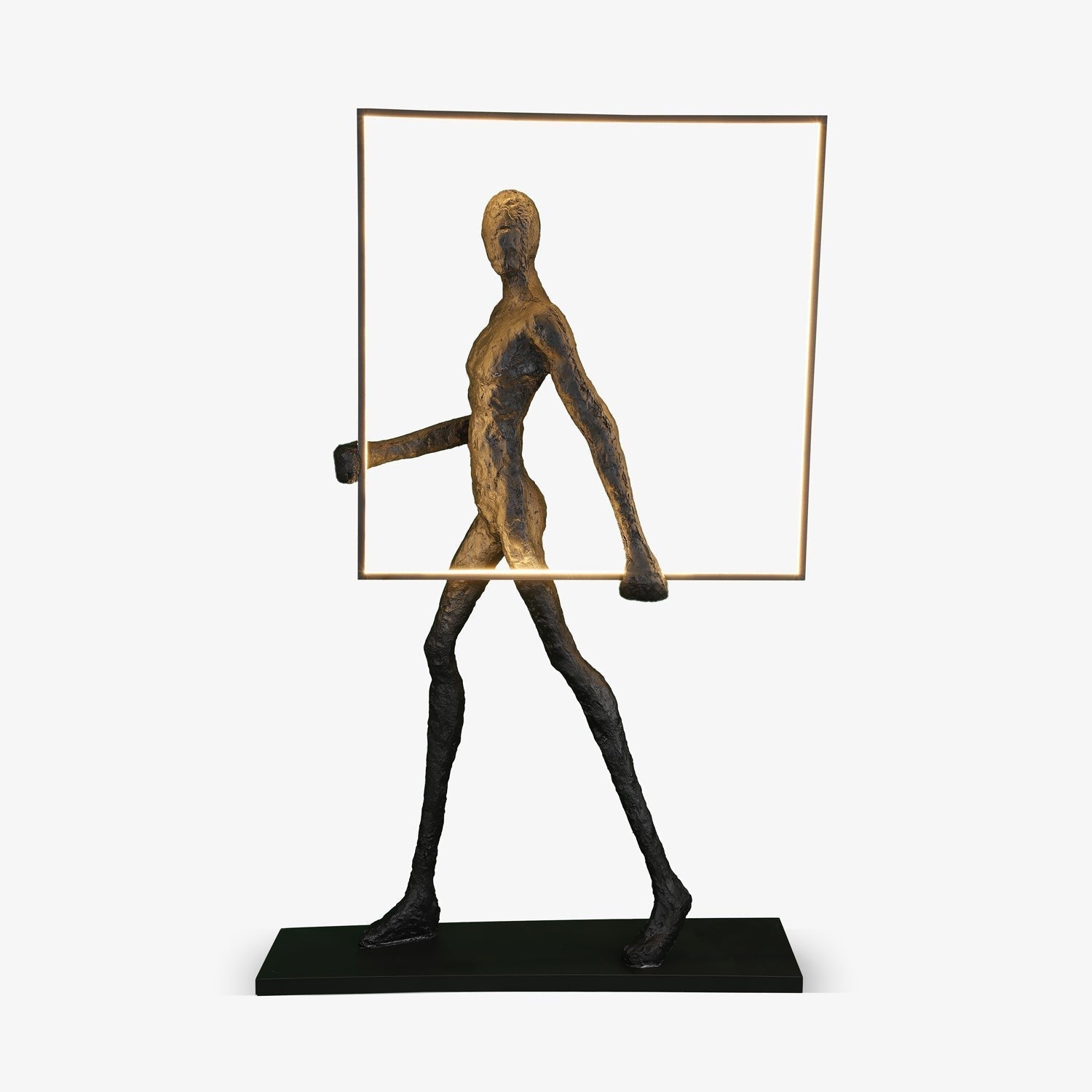 This floor lamp transcends lighting to become a bold sculptural statement. Defined by sweeping curves and geometric balance, it captures a sense of motion and scale while delivering soft ambient light. Ideal for expansive interiors, galleries, or statement-driven living spaces.