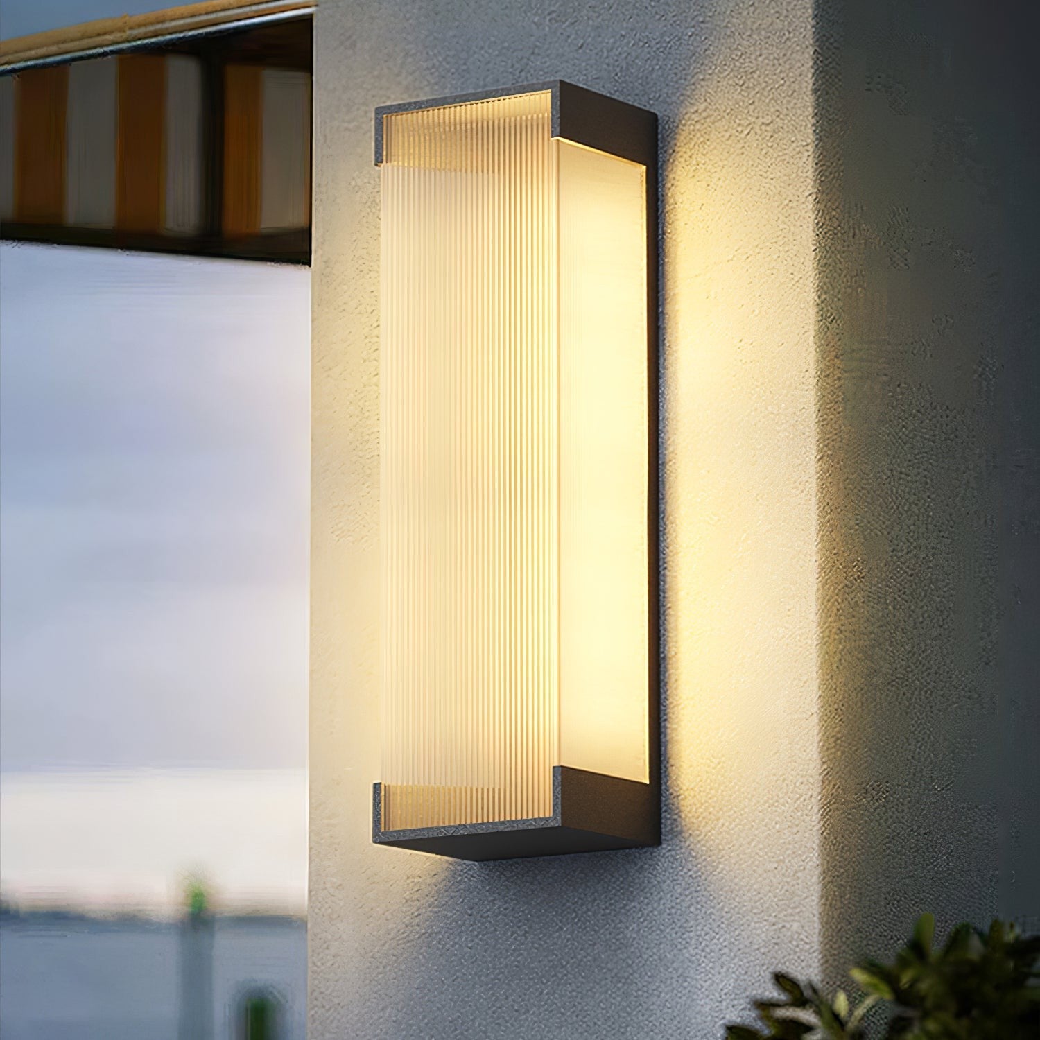 This outdoor wall light features a sleek rectangular form paired with a ribbed diffuser that softens and spreads light evenly. Designed for durability and visual clarity, it enhances exterior walls with subtle architectural elegance.